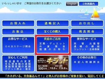 1. 画面中央の「資産のご活用(定期・デュエット)」を選択してください。
