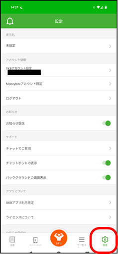 1.画面の下部にある「設定」タブをタップすると、「設定」画面が表示されます。