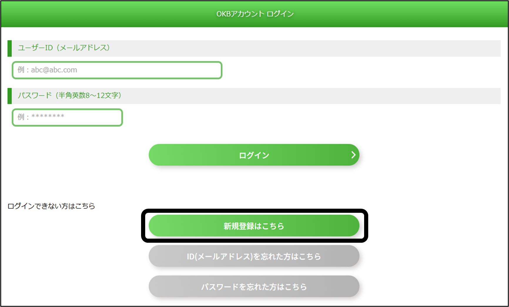 大変お手数をおかけしますが、OKBアカウント(OKBアプリ)の新規登録はパソコンなど他の端末でも登録することができますので、以下の手順①~⑧の操作をお試しください。